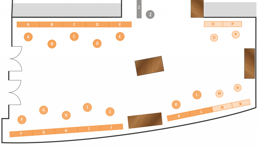 - Stand-/Wandfläche für den Aufbau von Roll-ups: Gesamtbreite max. 1,8 m (Gold), 1,5 m (Silber)